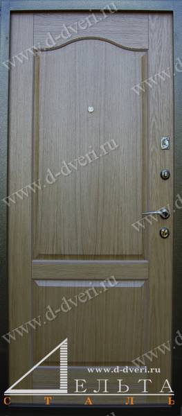 Дверь в квартиру с отделкой порошковое напыление и декоративная филенчатая панель МДФ шпон с рисунком